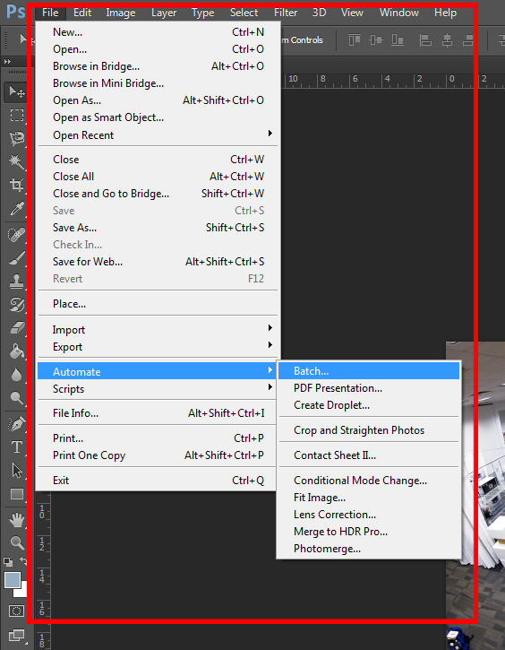 automate batchTo Batch edit in CS6, go to File>Automate>Batch. You will get a menu that looks like this: